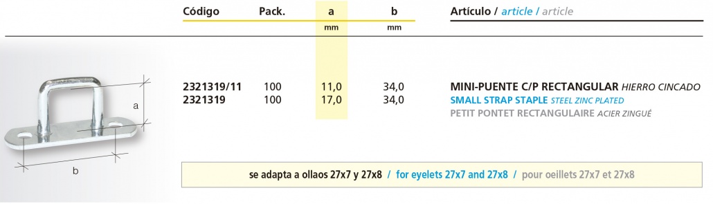 Los mini-puentes pueden utilizarse con ollaos ovalados 27/7 y 27/8.