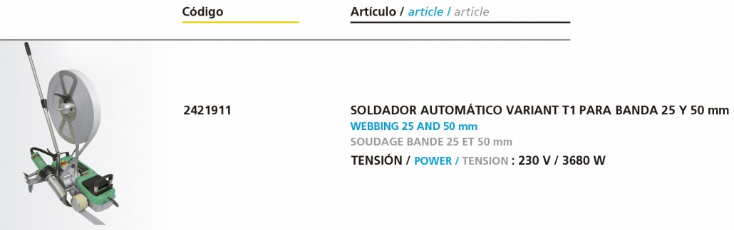 Soldador Automático Variant T1 para Banda 25 y 50 mm