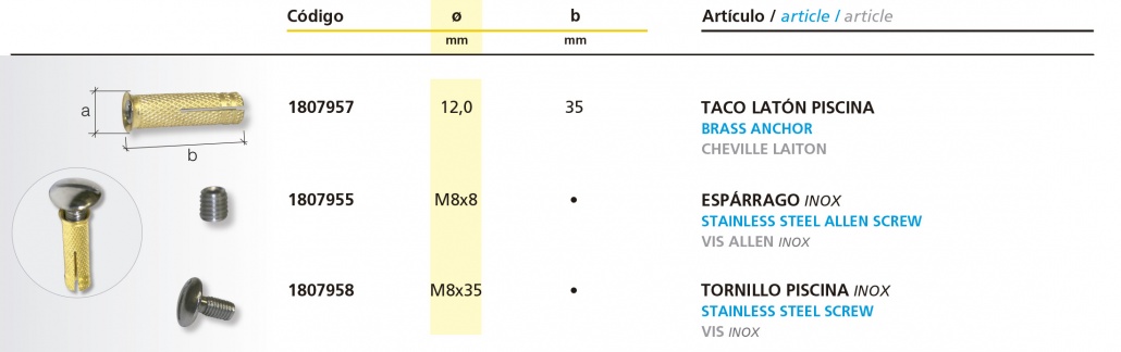 Taco latón Piscina y tornillo inox