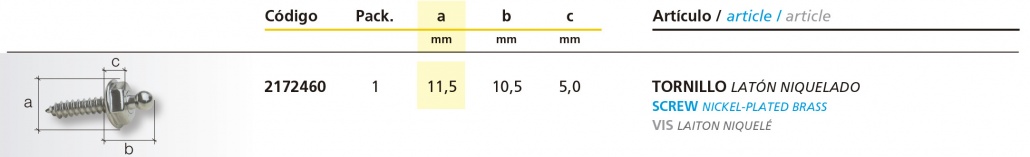 Tornillo latón niquelado. Medidas.